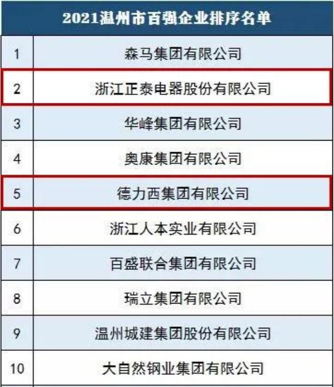 排名企业名地区1青山控股集团有限公司温州2正泰集团股份有限公司温州3德力西集团有限公司温州4人民电器集团有限公司温州5森马集团有限公司温州6华峰集团有限公司温州7致远控股集团有限公司温州8奥康集团有限...